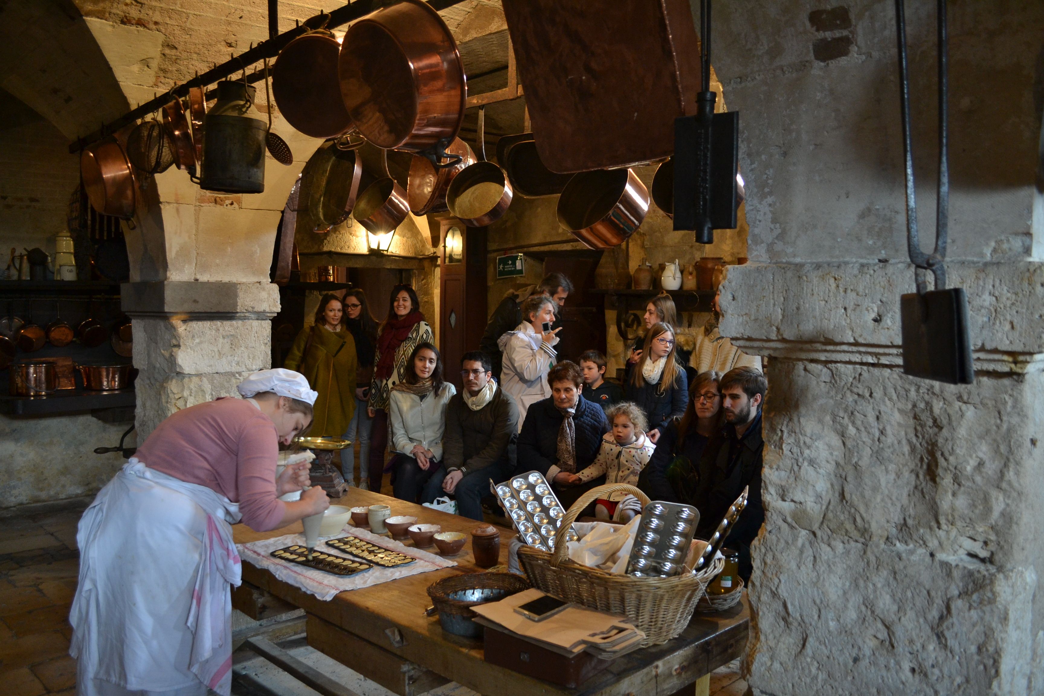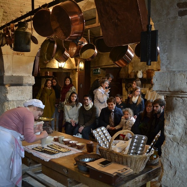 Avec la cuisinière du château, découverte des cuisines, de la recette et dégustation d'une petite madeleine au miel de Sologne. Sachet de madeleines et carte recette offerte à chaque participant.